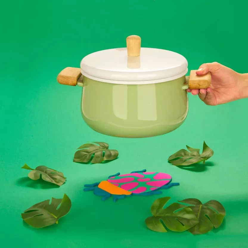 Ce dessous de plat coloré en forme de scarabée protégera vos surfaces tout en ajoutant une touche joyeuse et unique à votre table ou à votre cuisine.
