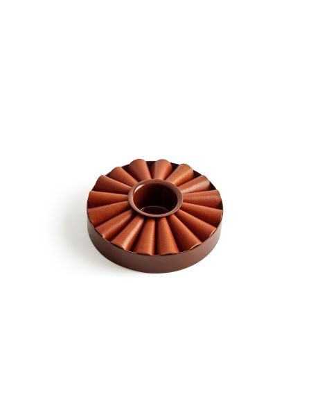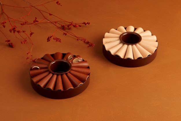 Bellis allie la grâce du cuir et la fermeté de l'acier. Les pièces de cuir pliées sont reliées les unes aux autres et soutenues par une base en acier et le capuchon de rangement au centre. Les deux pièces en acier sont filées à la main et ont une finition thermolaquée, tandis que le lit en cuir est créé avec de petits morceaux de cuir au tannage végétal obtenus à partir des pièces découpées dans l'atelier.
