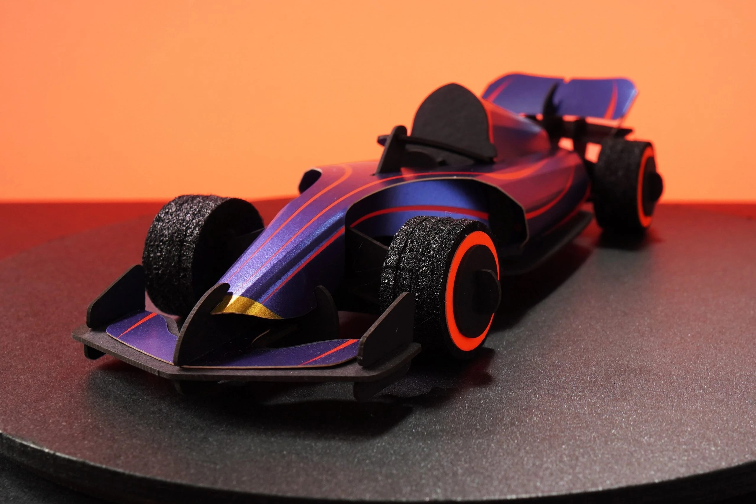Le cadeau idéal pour les passionnés de course et d’automobile. La voiture de course en papier DIY d’Assembli est amusante à réaliser et se transformera en une décoration élégante à exposer !