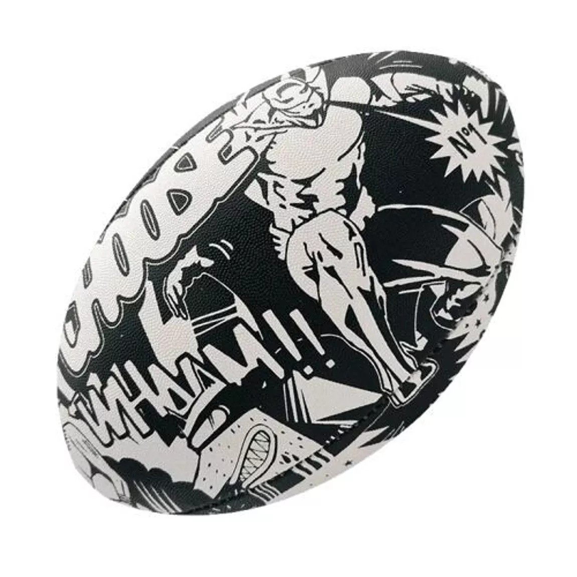 Découvrez le ballon de rugby « Comics by Rebond« , un design audacieux inspiré de l’univers des bandes dessinées. Parfait pour les passionnés de rugby et de comics !