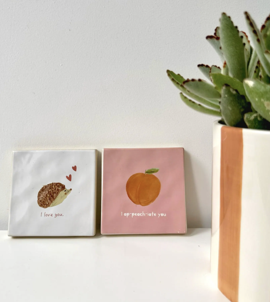 Ce joli carreau en céramique est orné d'un dessin de hérisson et du doux message « Je t'aime ».