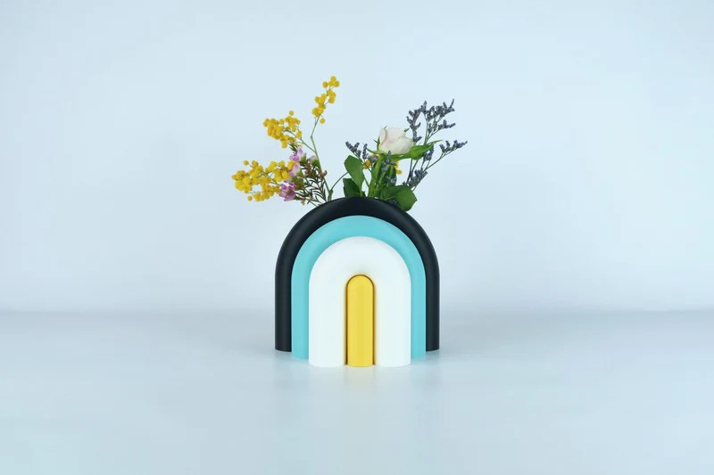 Vase et serre-livres ARC - les arcadiens - noir/lagon/blanc/jaune