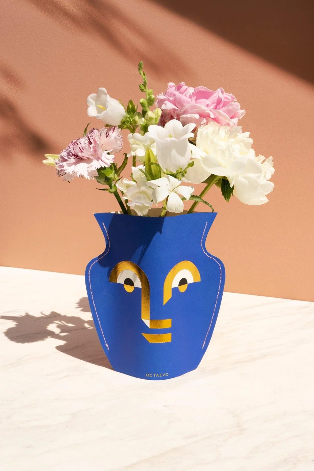 Ce vase artisanal vous invite à un voyage en Méditerranée. Fabriqué en papier imperméable spécial.
