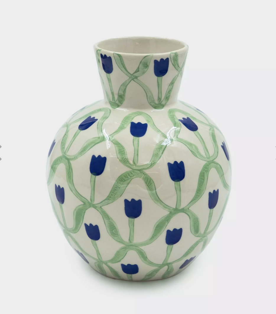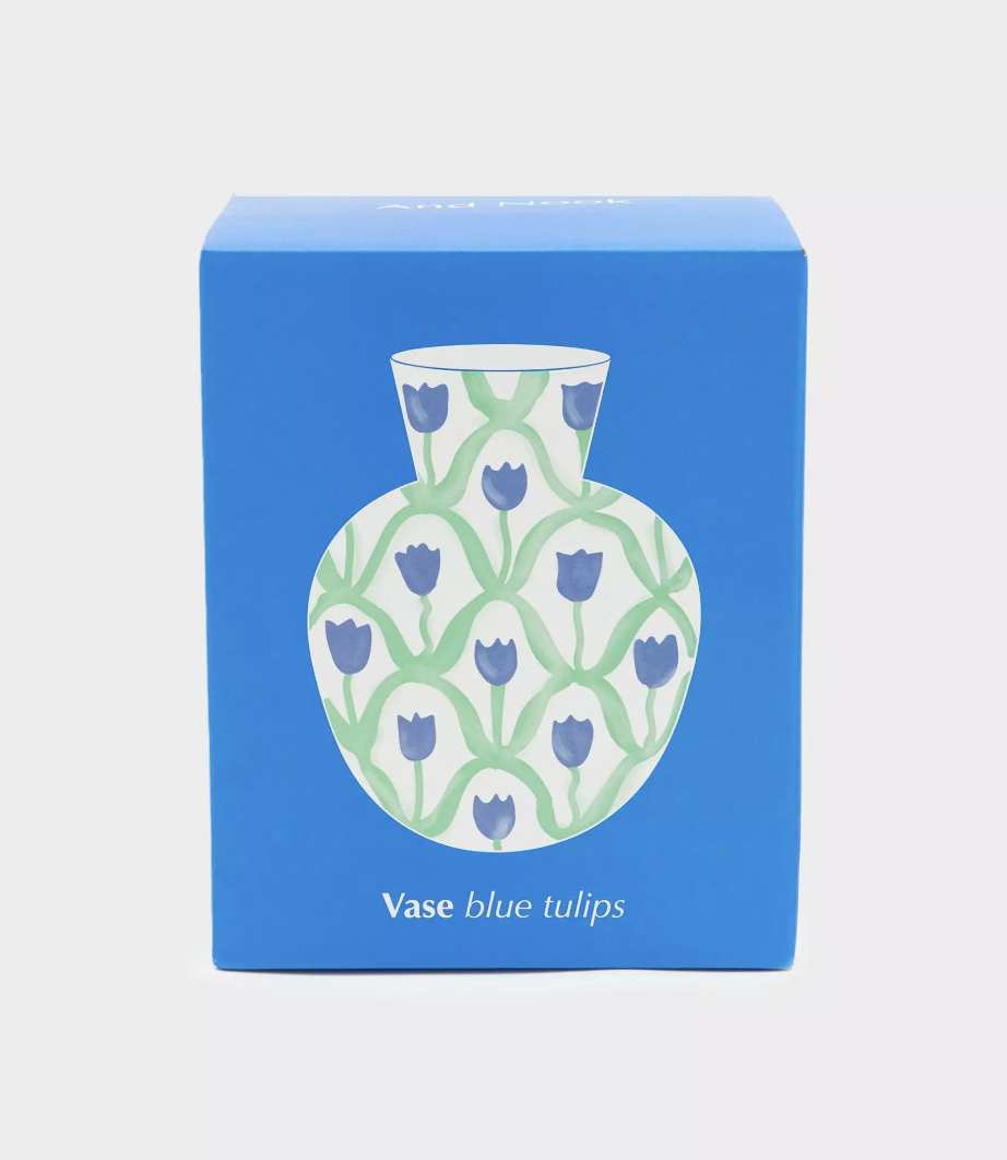 Le vase à tulipes bleues signé And Nook est entièrement peint à la main.